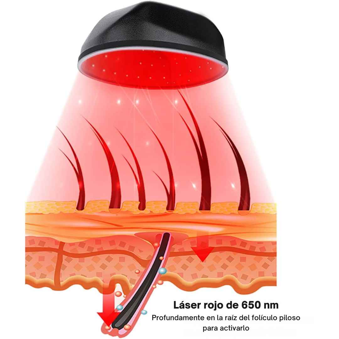 Growth Cap™ utiliza terapia de luz LED de baja intensidad para estimular los folículos pilosos, mejorando el crecimiento, fortaleciendo el cabello y previniendo su caída.