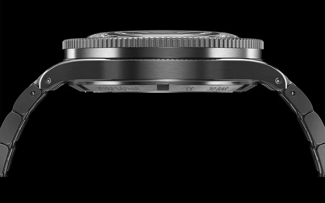El diseño rinde homenaje a los primeros relojes de buceo de los años 60, combinando la estética vintage con tecnologías modernas. La esfera negra mate con índices luminiscentes y el brazalete tipo “escamas” crean un look inconfundible.